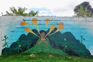 Two youngsters from La Perse, an artist from Denmark (known as “La Extranjera”, or in English “The Foreigner”) and a Colombian muralist joined forces to make Rosa’s walls talk. “Chichamama” is the name of the mural. Chicha is a traditional maize-based drink produced by various indigenous communities across the Colombian territory. Corn was the main food that the Muisca indigenous community consumed, being a key nutrient not only for the body but also for the soul.
